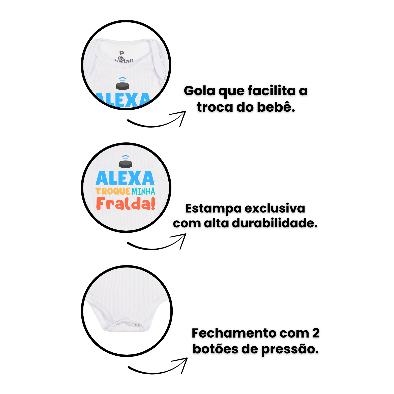 Ideal para acompanhar o crescimento do seu pequeno, o body possui modelagem prática, fechamento com botões de pressão e pode ser personalizado, tornando cada peça única e especial.